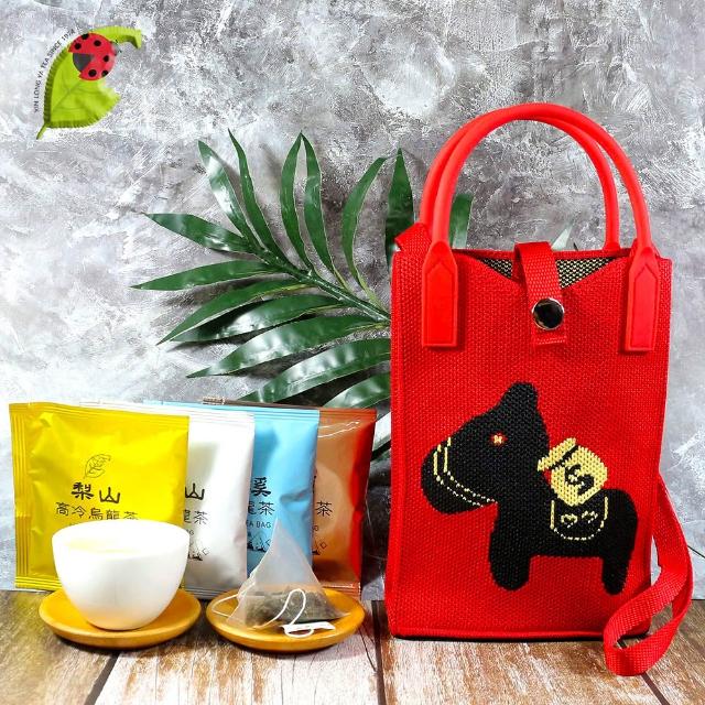 龍源茶品馬上有錢-茗大山頭三角立體茶包禮盒-12包x3g/袋-附提袋│杉林溪│阿里山│梨山高冷│凍頂烏龍│針織斜背包