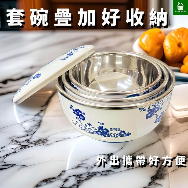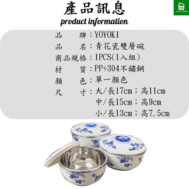 YOYOKI 304不鏽鋼青花瓷雙層碗 不鏽鋼碗/隔熱碗/雙層碗/套碗/附蓋/多用碗/防燙碗/泡麵碗/兒童碗