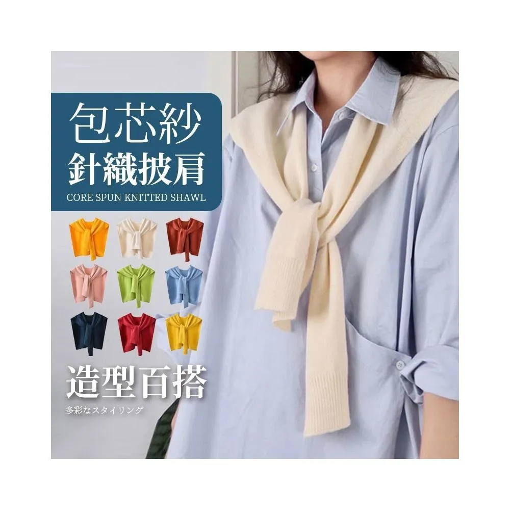 JMI 日系包蕊紗針織披肩 薄款素色搭肩 韓版針織披肩 韓系穿搭 日系穿搭 打結圍巾 防曬外搭
