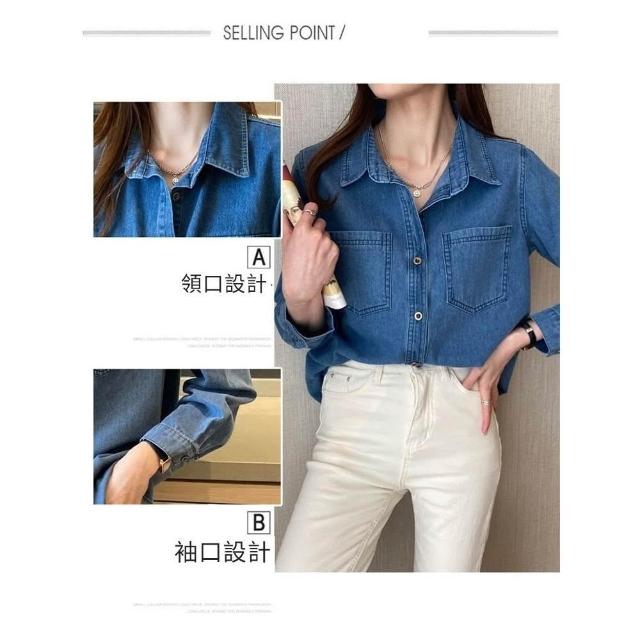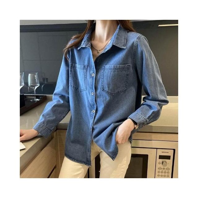 JMI 復古風藍色牛仔襯衫 牛仔外套 牛仔穿搭 文青穿搭 寬版牛仔襯衫 女士牛仔襯衫 寬鬆版型 顯瘦