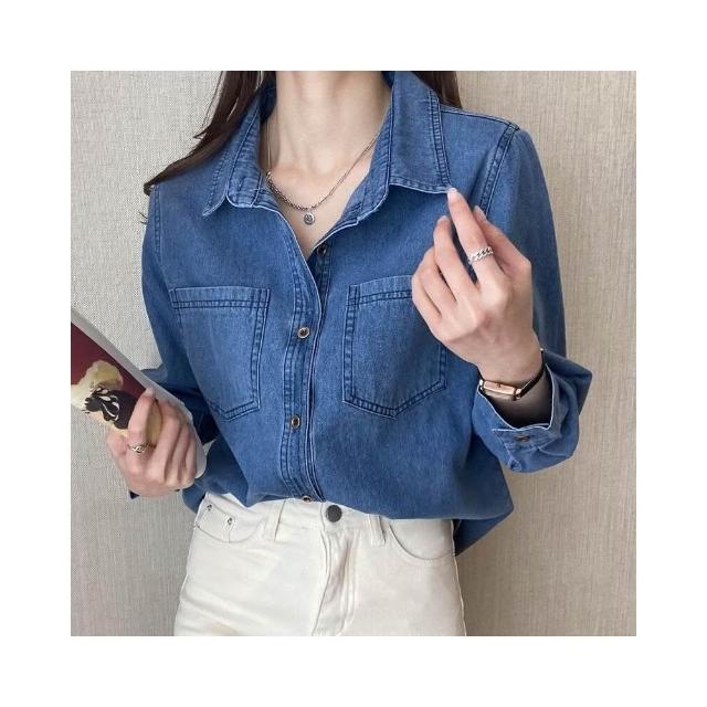 JMI 復古風藍色牛仔襯衫 牛仔外套 牛仔穿搭 文青穿搭 寬版牛仔襯衫 女士牛仔襯衫 寬鬆版型 顯瘦