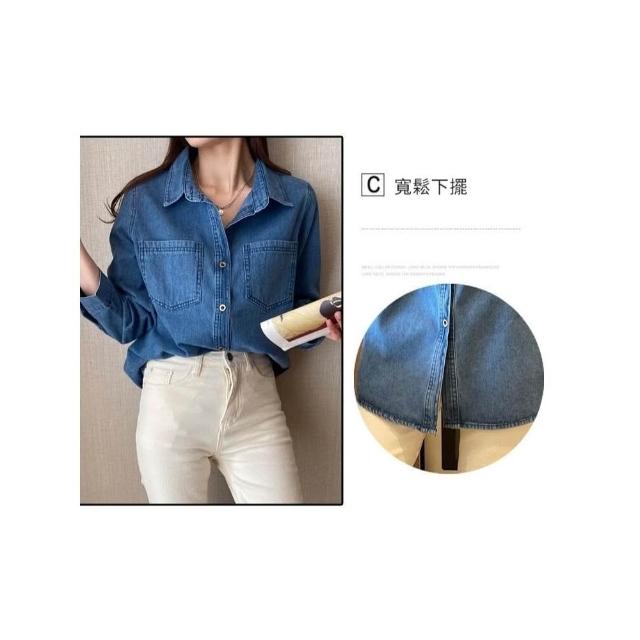 JMI 復古風藍色牛仔襯衫 牛仔外套 牛仔穿搭 文青穿搭 寬版牛仔襯衫 女士牛仔襯衫 寬鬆版型 顯瘦