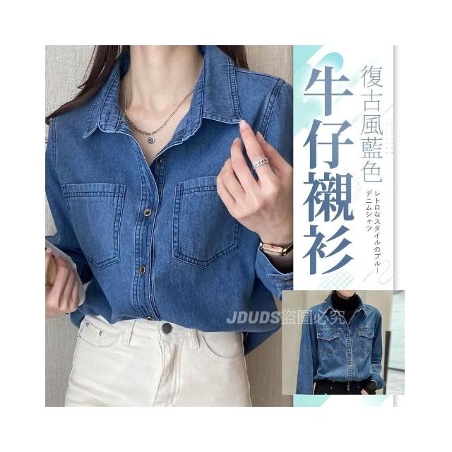 JMI 復古風藍色牛仔襯衫 牛仔外套 牛仔穿搭 文青穿搭 寬版牛仔襯衫 女士牛仔襯衫 寬鬆版型 顯瘦
