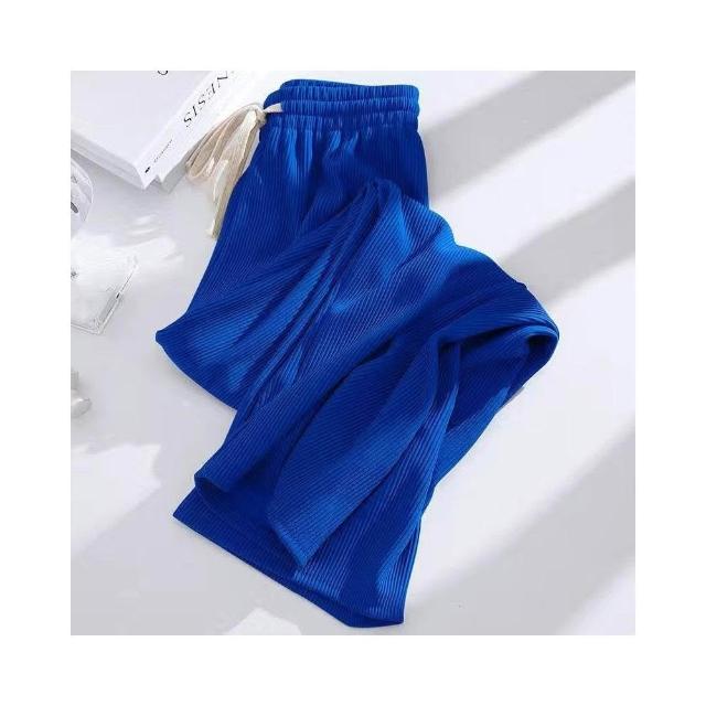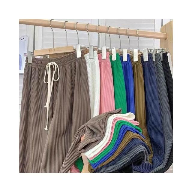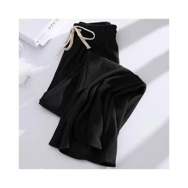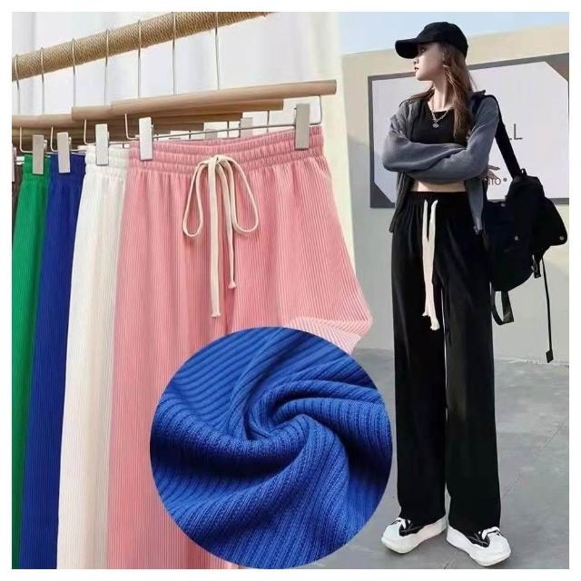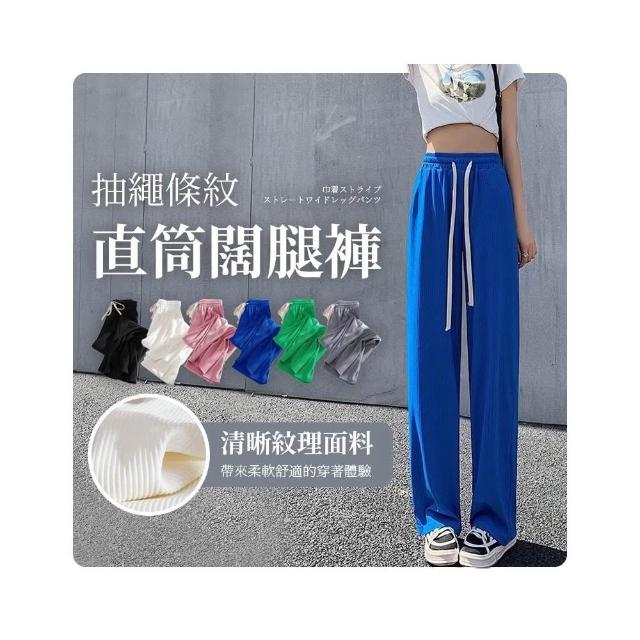JMI 高腰抽繩條紋 直筒括腿褲 溜灣褲 高腰寬鬆重感休閒長褲 高腰褲 拖地褲 直筒褲