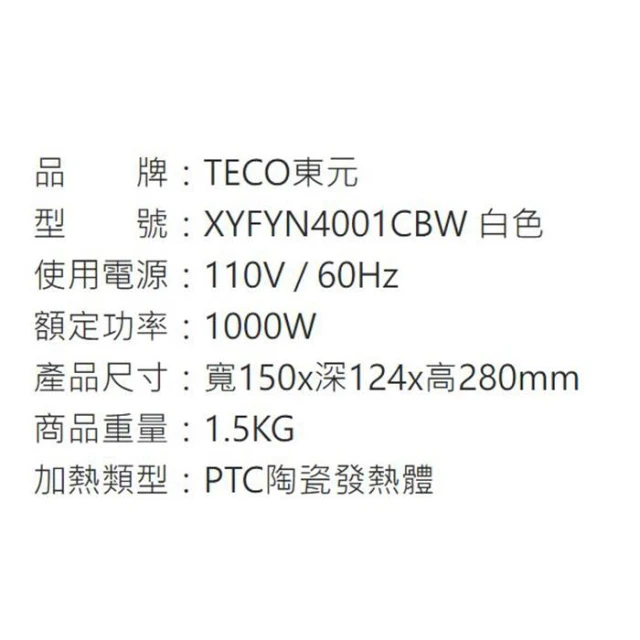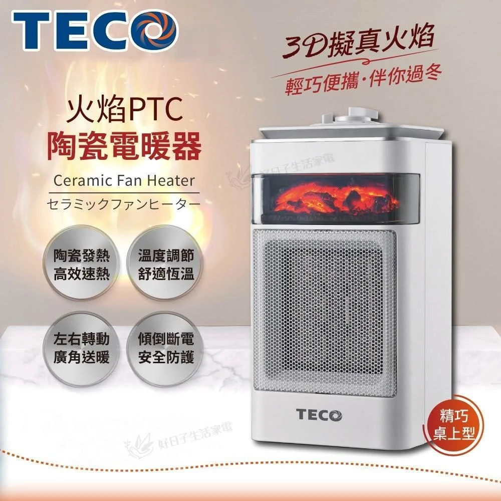 TECO 東元3D擬真火焰PTC陶瓷電暖器/暖氣機 XYFYN4001CBW