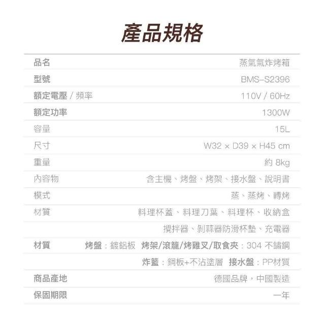 BAMOUSSE 巴慕斯多功能蒸氣氣炸烤箱15L /含炸籃+滾籠套組 (BMS-S2396)