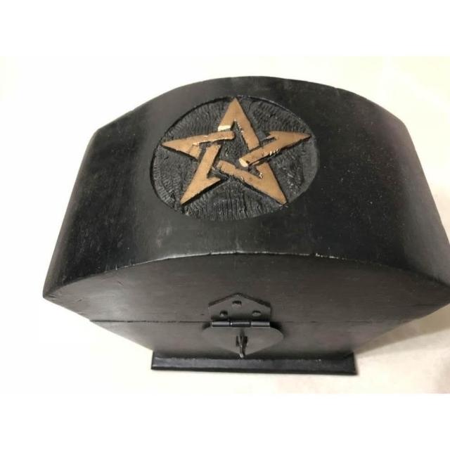 魂【五芒星扇形桌上收納櫃 復古櫃子 五角星 祭壇 魔法 儀式用品 飾品收納 魔法盒 能量盒 靈氣盒 木製收納櫃