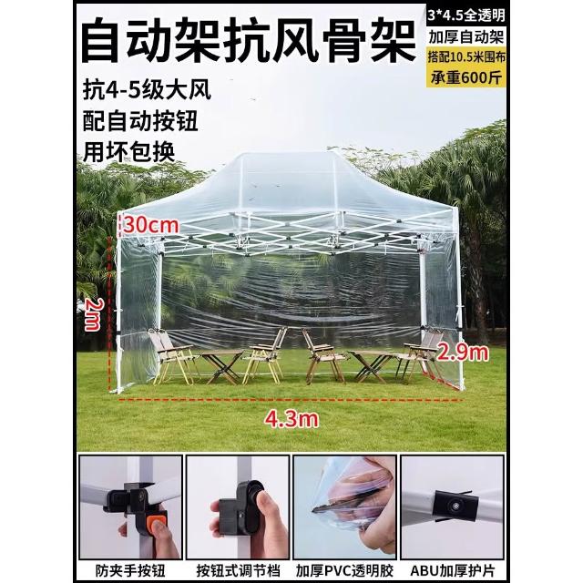 全透明帳篷 戶外露天陽光房花房夜市擺攤四腳傘遮陽棚簡易摺疊大傘