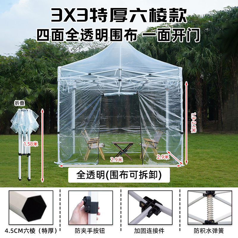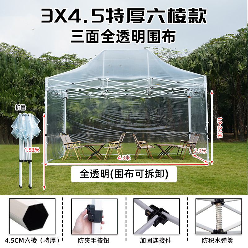 全透明帳篷 戶外露天陽光房花房夜市擺攤四腳傘遮陽棚簡易摺疊大傘