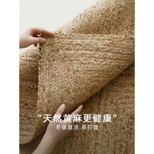 进口环保纯手工黄麻地毯 客厅卧室床边地垫 民宿新中式侘寂极简手工编织地毯