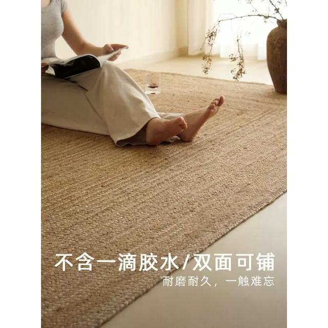 进口环保纯手工黄麻地毯 客厅卧室床边地垫 民宿新中式侘寂极简手工编织地毯