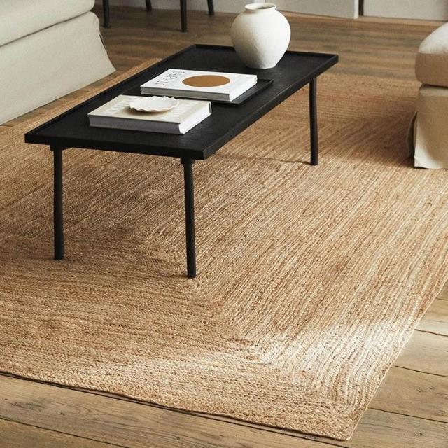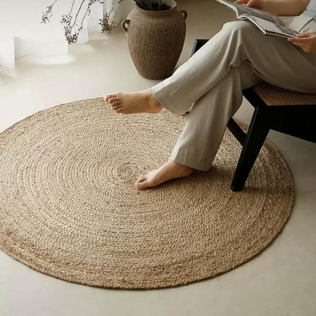 进口环保纯手工黄麻地毯 客厅卧室床边地垫 民宿新中式侘寂极简手工编织地毯