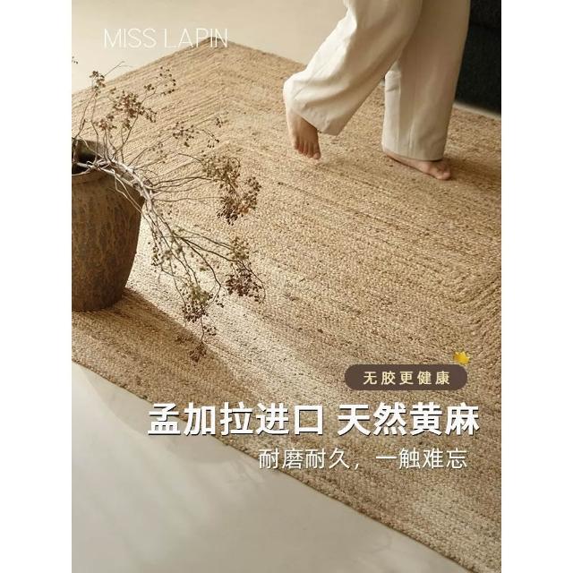 进口环保纯手工黄麻地毯 客厅卧室床边地垫 民宿新中式侘寂极简手工编织地毯
