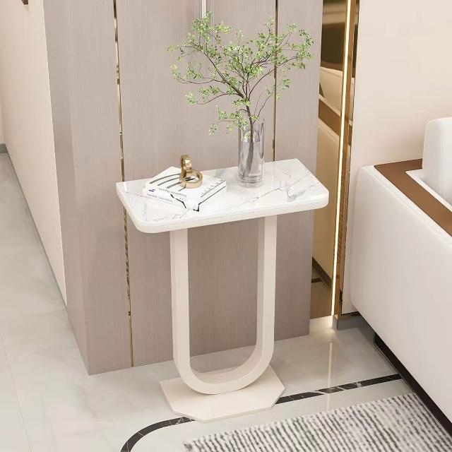 奶油風岩板邊桌 創意花架 花幾 簡約藝術沙發邊幾 客廳靠牆置物架 陽台落地花盆架