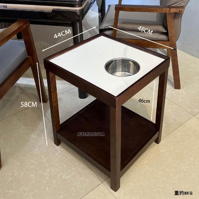 高檔棋牌室實木岩板茶水架 茶樓邊几 麻將館桌專用不銹鋼煙灰缸茶幾