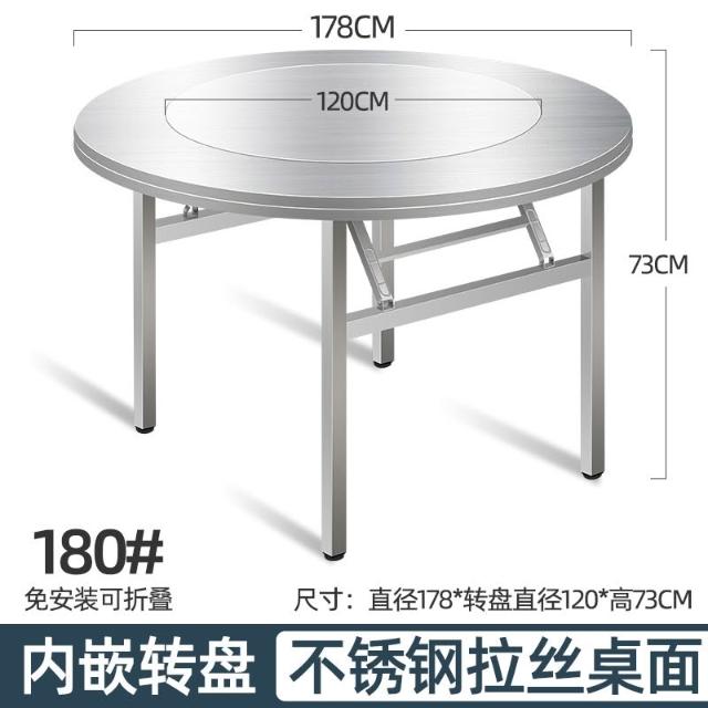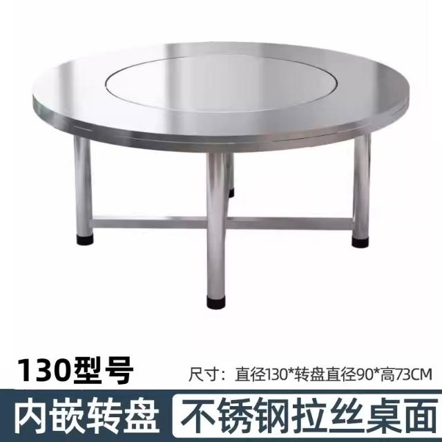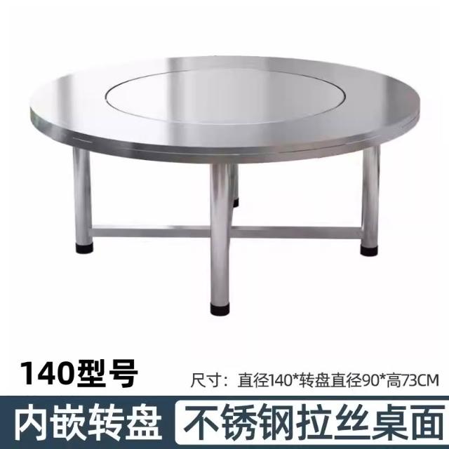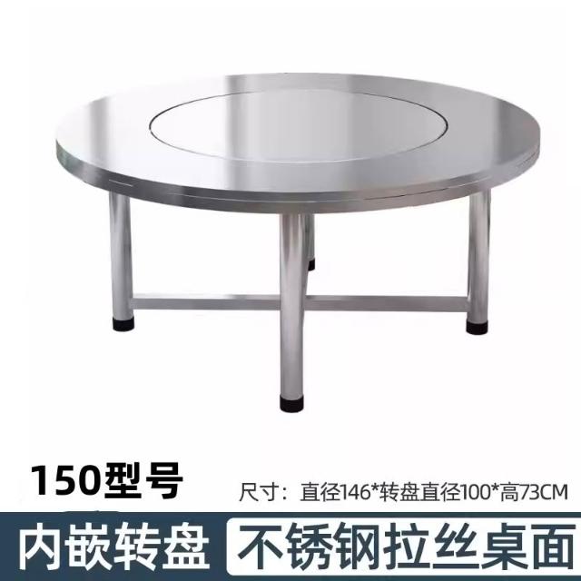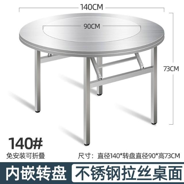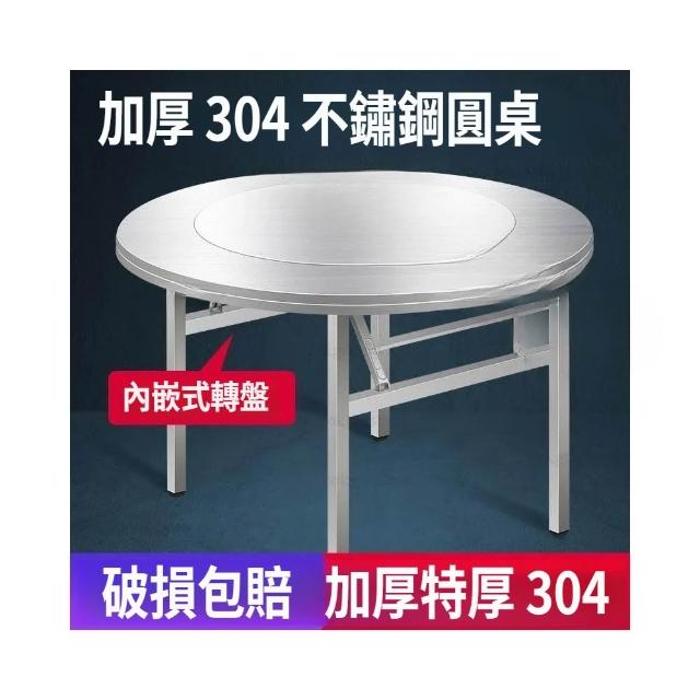 304特厚全不銹鋼內置轉盤桌 可折疊大圓桌家用酒席飯店食堂吃飯桌 轉盤桌 餐桌