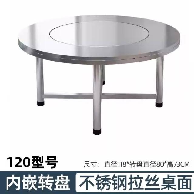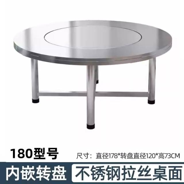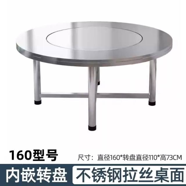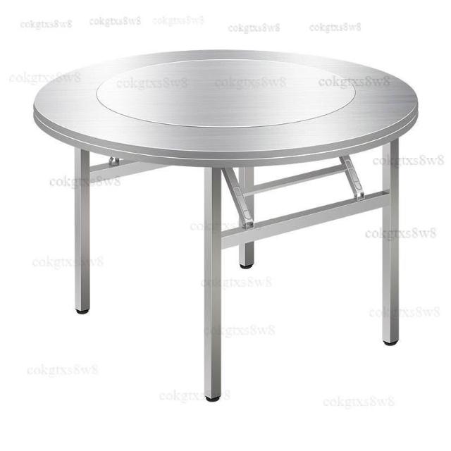 304特厚全不銹鋼內置轉盤桌 可折疊大圓桌家用酒席飯店食堂吃飯桌 轉盤桌 餐桌