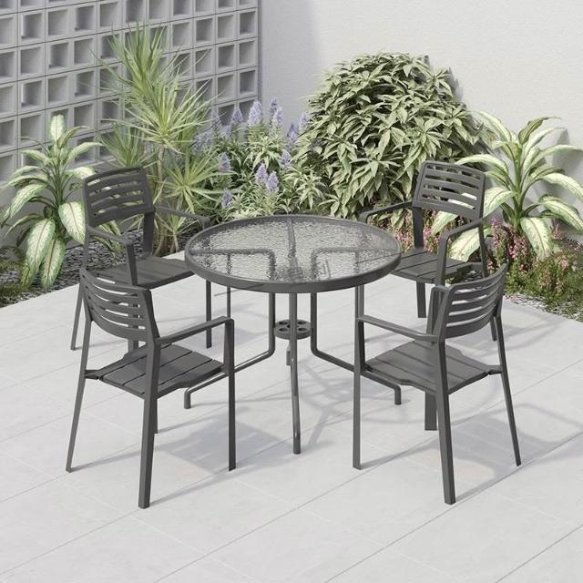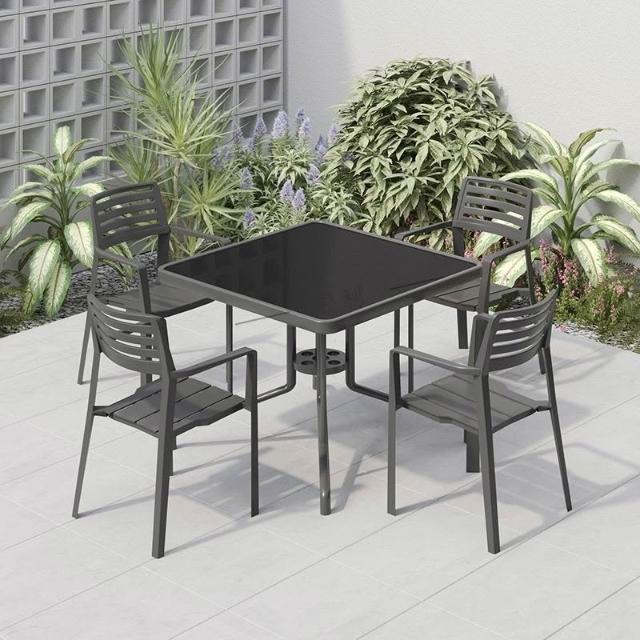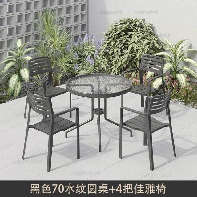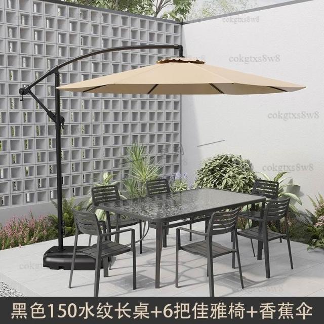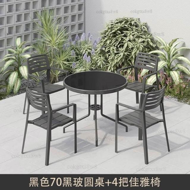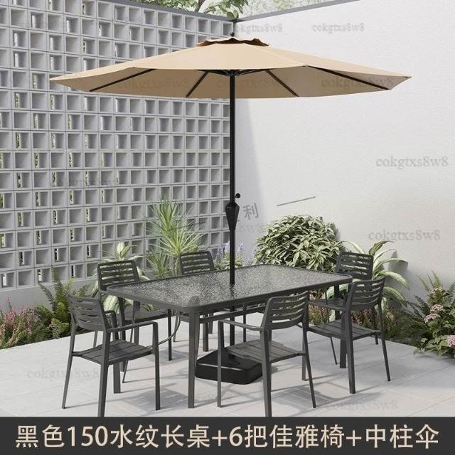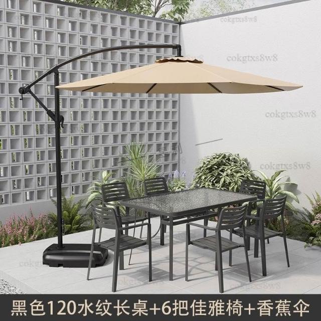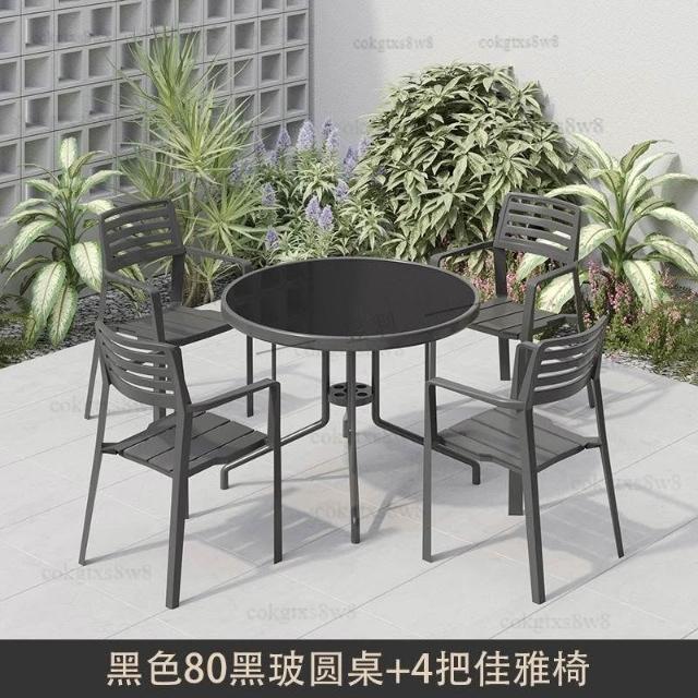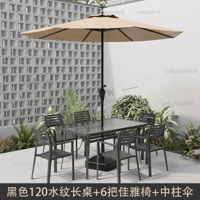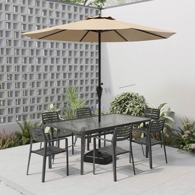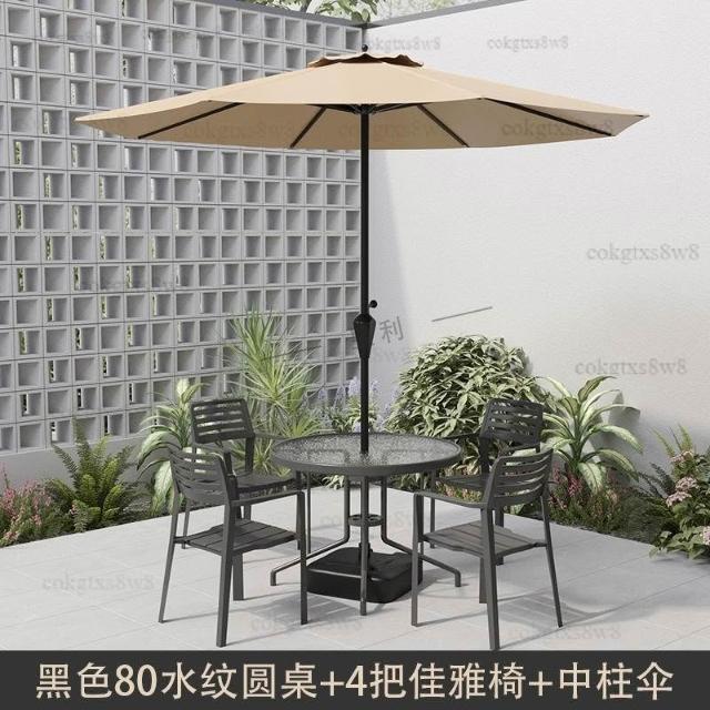 戶外庭院桌椅傘組合 帶遮陽傘花園室外休閒露天外擺奶茶咖啡廳洽談桌椅 陽台桌椅