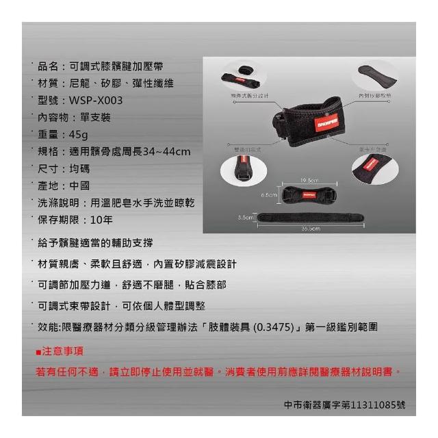 醫療級髕骨帶 髕骨加壓帶 髕骨護膝 護髕骨 3D軟墊 緩衝減震 可調式 單支 WSP-X003
