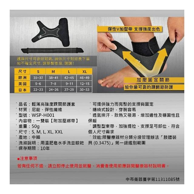 醫療級 護踝 護踝套 加壓護踝 運動護踝 附加壓綁帶 輕薄 透氣 固定 一雙 WSP-H001