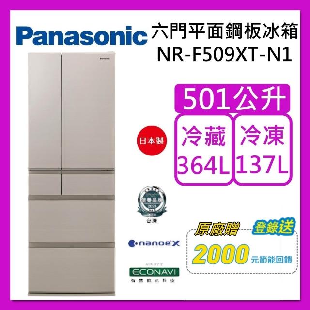 Panasonic 國際牌501L 六門平面鋼板冰箱 NR-F509XT-N1 香檳金 日本製 台灣公司貨