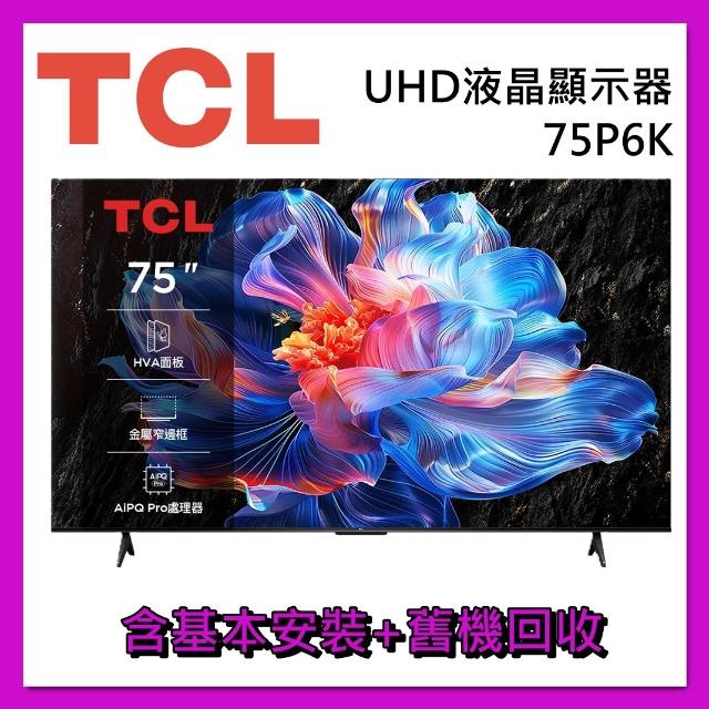 TCL75吋 75P6K DLED Google TV 量子智能連網 液晶顯示器 液晶螢幕 台灣公司貨