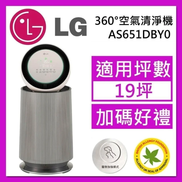 LG 樂金【加贈1個濾網】AS651DBY0 寵物功能增加版二代 單層 360°空氣清淨機 台灣公司貨