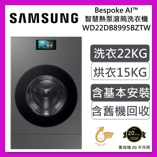 Samsung 三星【好禮二選一】22+15KG AI智慧 熱泵 滾筒洗衣機 蒸洗脫烘 WD22DB8995BZTW 台灣公司貨
