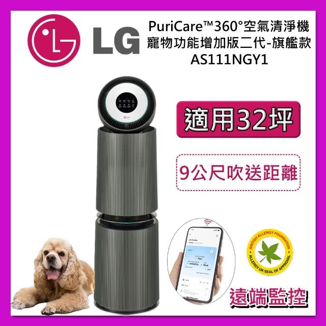 LG 樂金【加贈4個濾網】32坪 360° 空氣清淨機 AS111NGY1 寵物功能增加版二代-旗艦款 接替 AS111NGY0