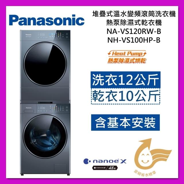 Panasonic 國際牌 堆疊式 溫水滾筒洗衣機+熱泵除濕式乾衣機 (NA-VS120RW-B+NH-VS100HP-B) 洗12KG乾10KG