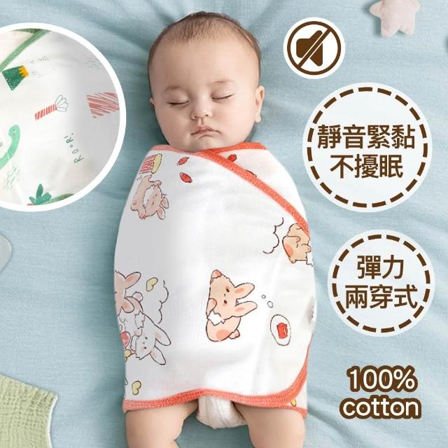 現貨免等『靜音好眠』純棉無聲魔術貼自黏嬰兒安撫包巾(80x35cm)新生兒襁褓巾 保暖防驚 寶寶包手肚圍 大彈力 魔鬼氈