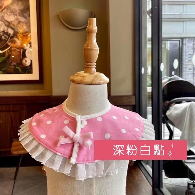 現貨免等『粉色派對』光澤網紗百褶花邊蝴蝶結圓領寶寶圍兜 嬰兒口水巾 防水毛巾底 可調節式雙扣 女寶穿搭 假領 愛心 波點