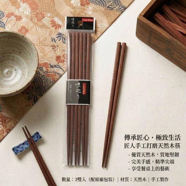 日系和風 天然木手工筷子 22.5cm 木筷 尖頭筷 3雙入