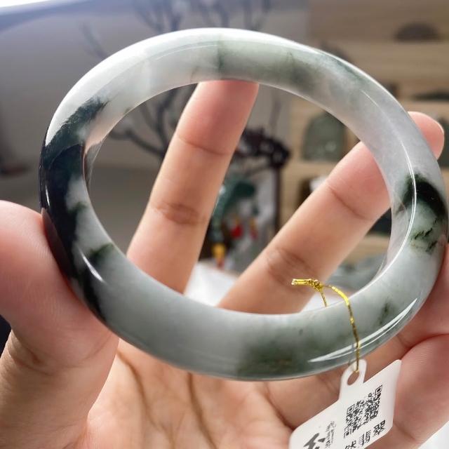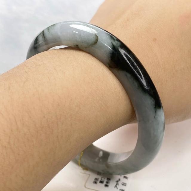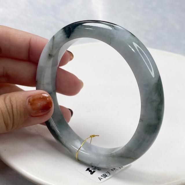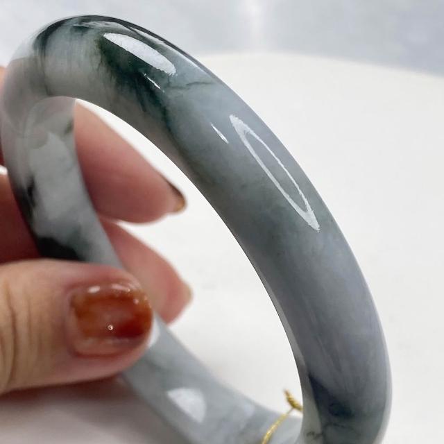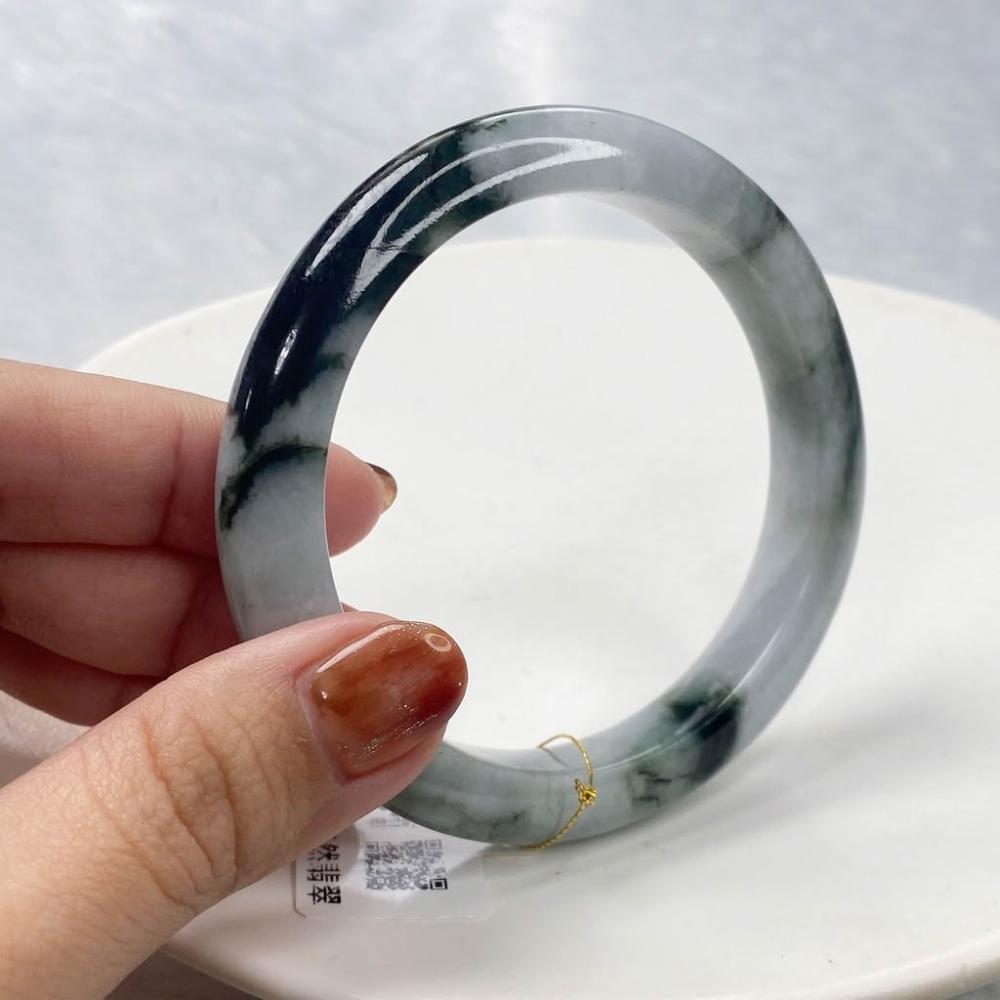 玉我翡翠灰藍底帶油青 手鐲 58.3mm 緬甸A貨翡翠 S53-50 玉我翡翠