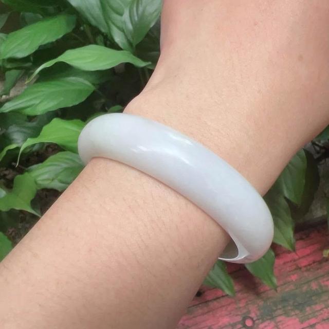 玉我翡翠牛奶白淡紫底手鐲 52.8mm 緬甸A貨翡翠 S7650 玉我翡翠