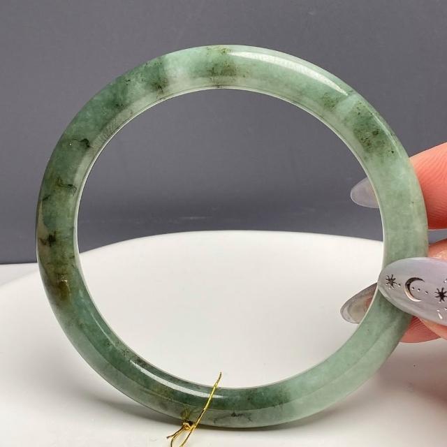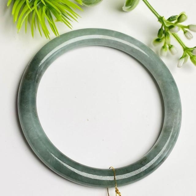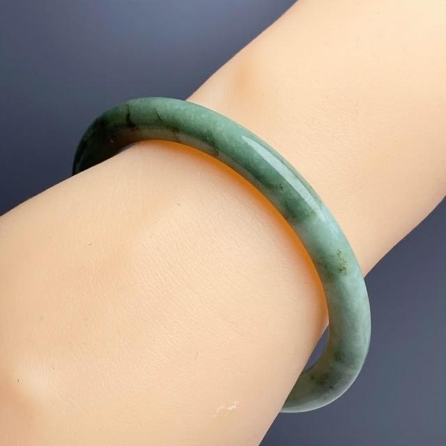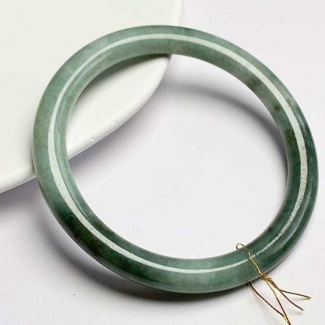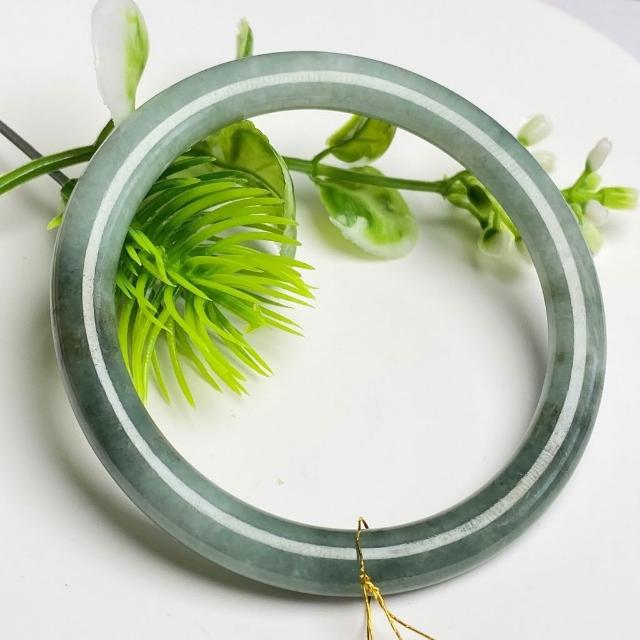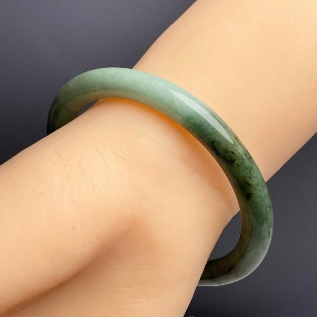 玉我翡翠油青飄花細圓條 圓鐲 (58)mm /附陸証 M19637 緬甸A貨翡翠 玉我翡翠