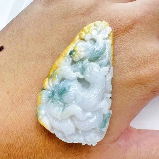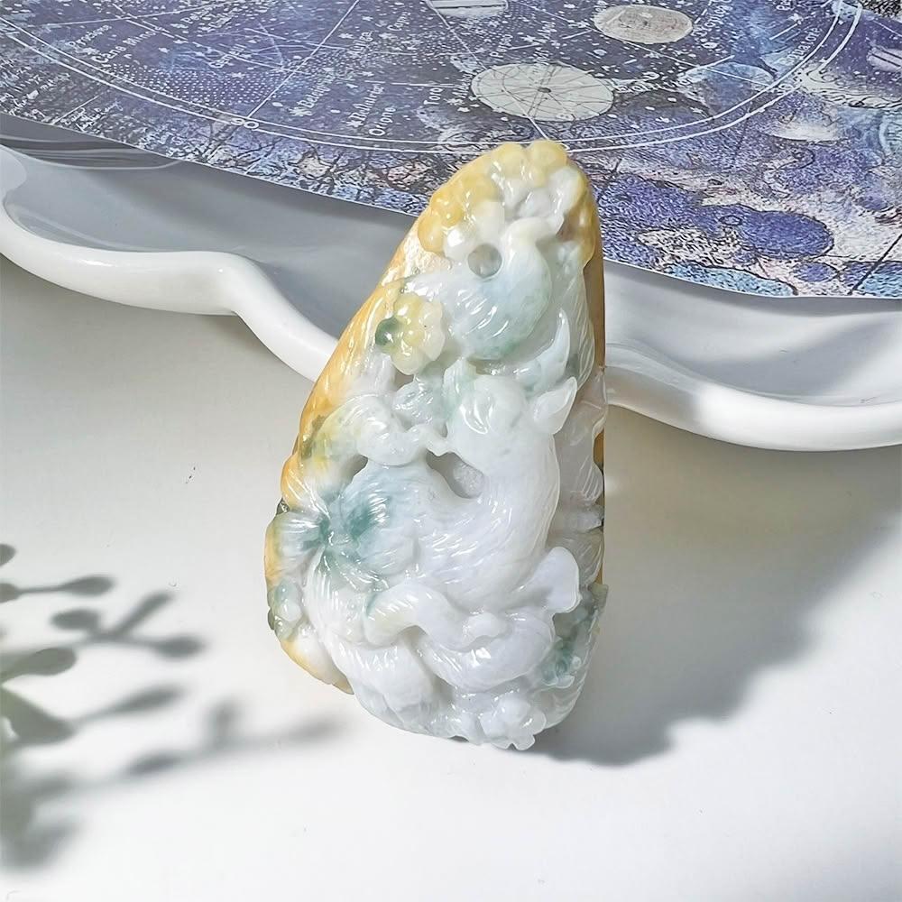 玉我翡翠九尾狐 吊墜擺件 緬甸A貨翡翠 M16297玉我翡翠