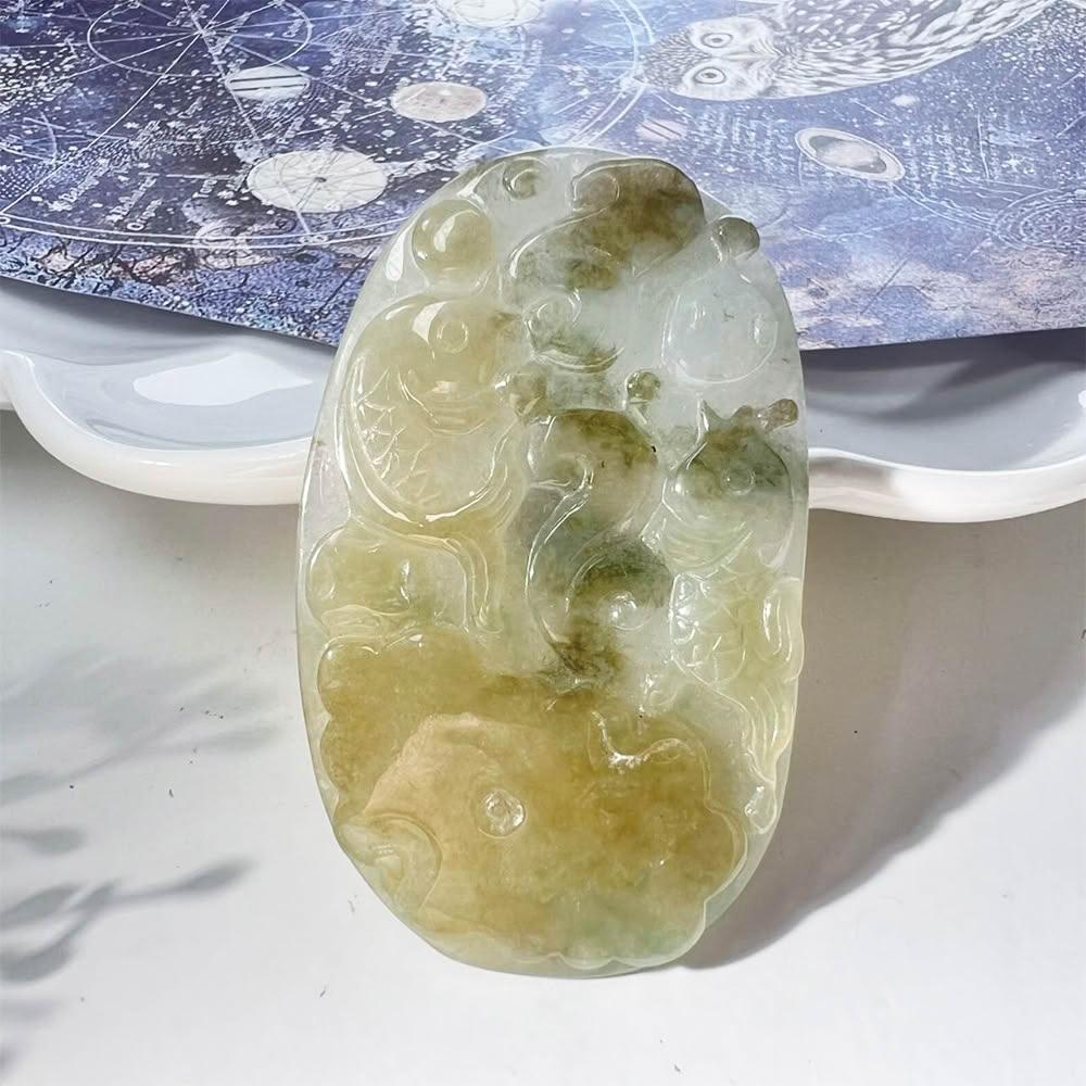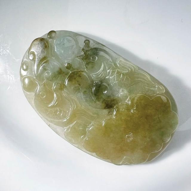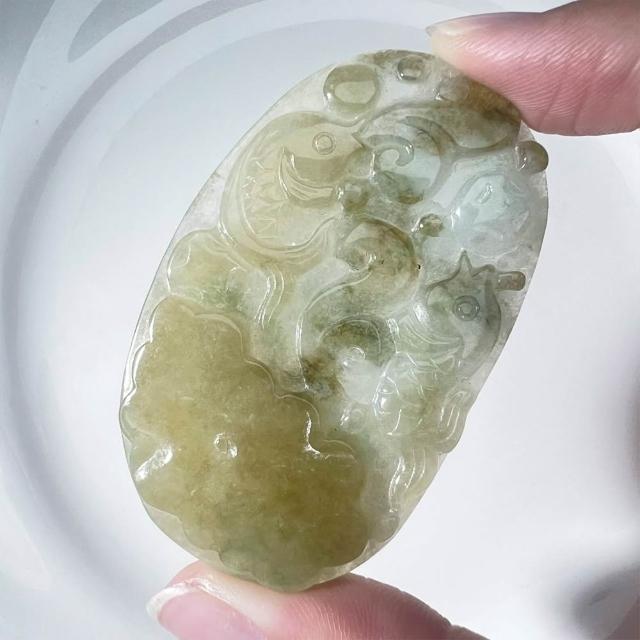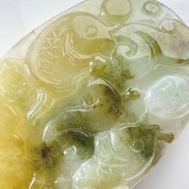 玉我翡翠魚牌 荷葉魚 掛件牌件 緬甸A貨翡翠 M21863玉我翡翠