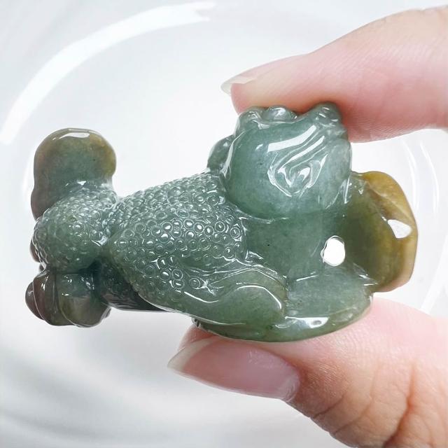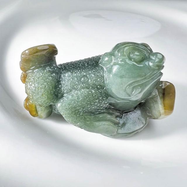 玉我翡翠三角金蟾 擺飾 M22810 緬甸A貨翡翠玉我翡翠