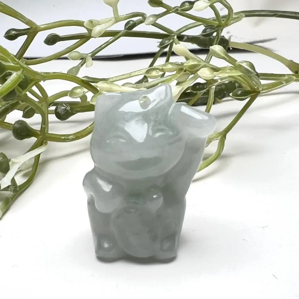 玉我翡翠招財貓 貓咪 立體擺件吊墜 M2532 緬甸A貨翡翠玉我翡翠