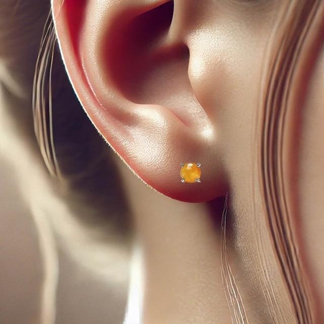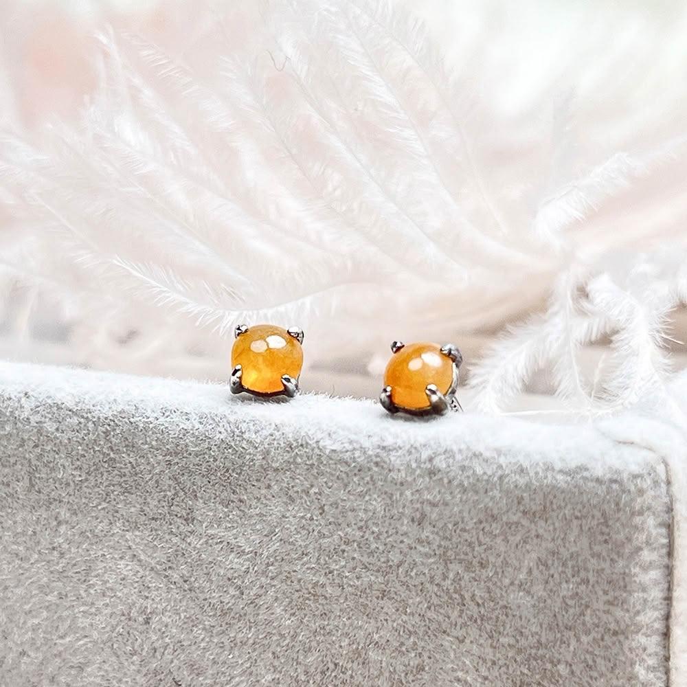黃翡 耳針 耳釘 925純銀耳飾 M6421*1 緬甸A貨翡翠【玉我翡翠】耳環 純銀飾品