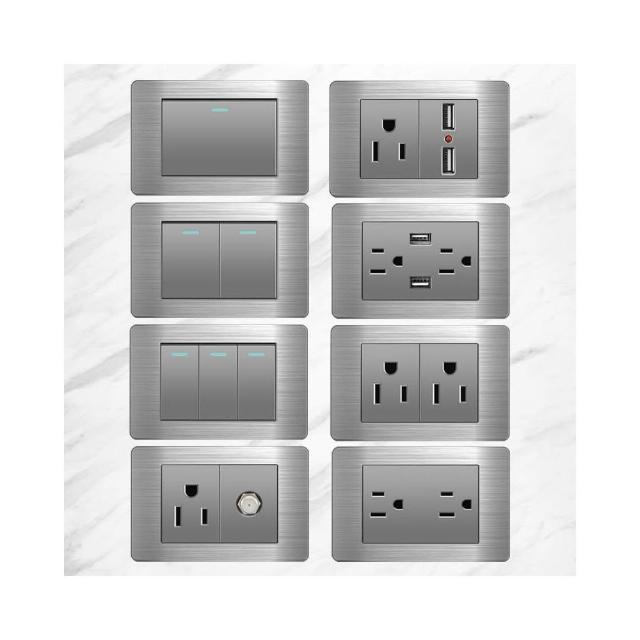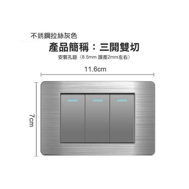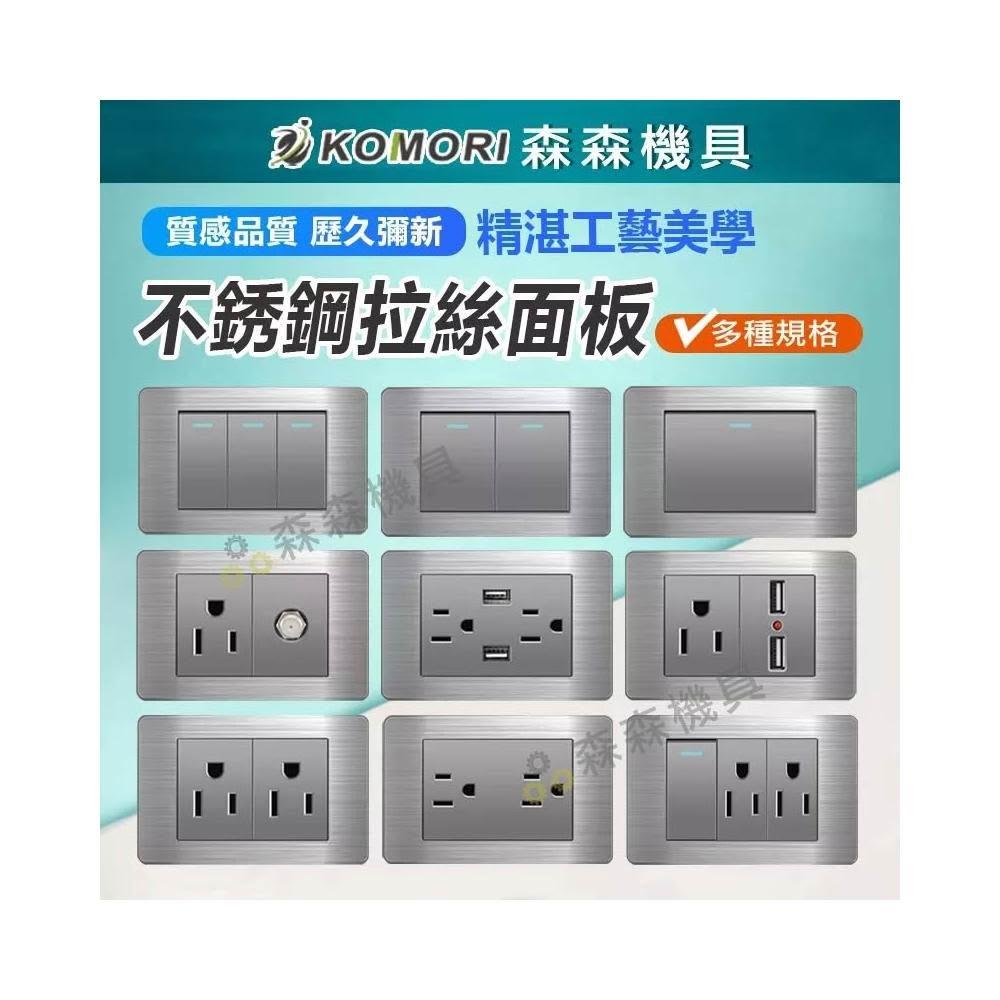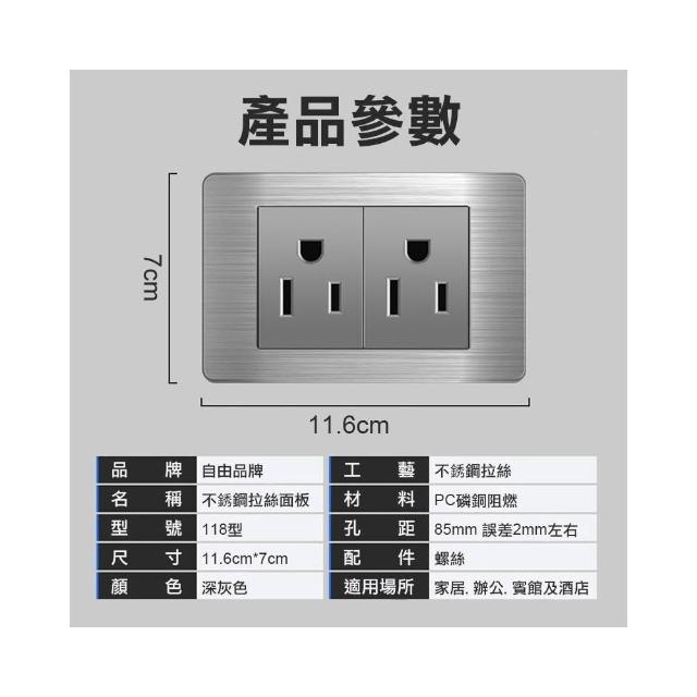 插座開關面板 不鏽鋼拉絲系列面板 單開雙開三開 接地雙插座 三插座 不銹鋼拉絲面板 灰色面板 燈具開關 牆壁電器插座 森