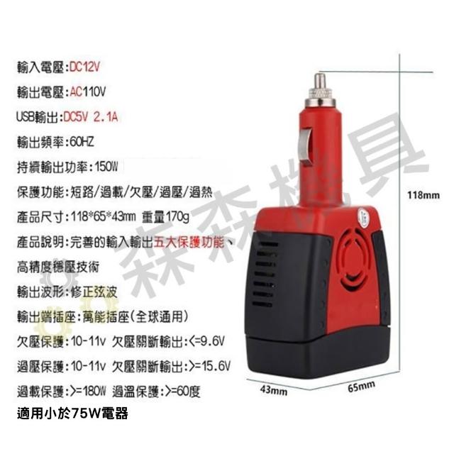 車用插座 逆變壓器 12v轉110v 75W 變壓器 逆變器 電源轉換器 直流轉交流 汽車電源轉家用電源 森森機具