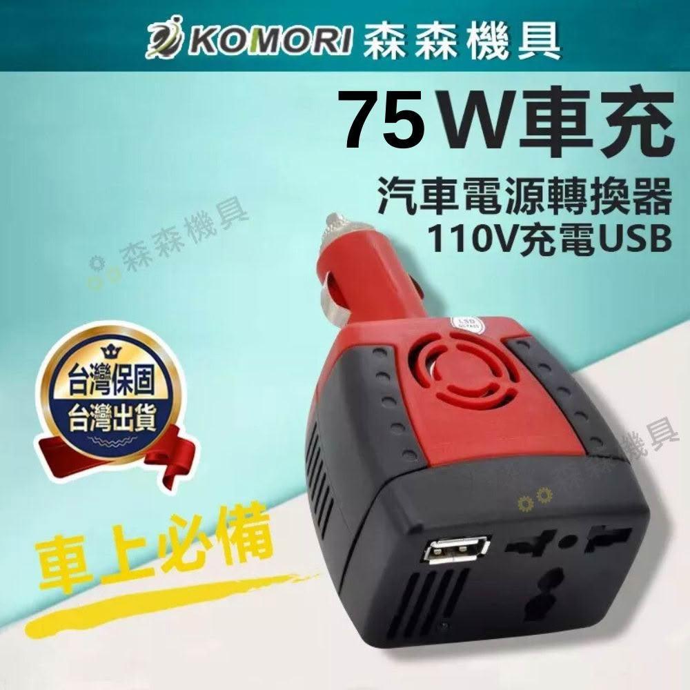 車用插座 逆變壓器 12v轉110v 75W 變壓器 逆變器 電源轉換器 直流轉交流 汽車電源轉家用電源 森森機具
