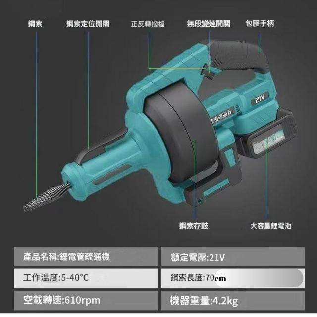 Komori 森森機具 (預購)鋰電通管機 通用牧田電池 充電式管道疏通器 下水道廚房通管機 自動離合疏通器通水管