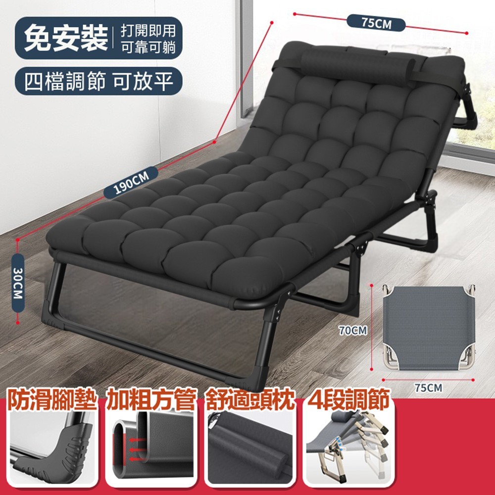 躺椅折疊床 四檔調節 摺疊床 加寬75床墊 附珍珠棉墊 ( 午睡床 折疊床椅 躺椅折疊床 行軍床 午休躺椅 躺椅 )