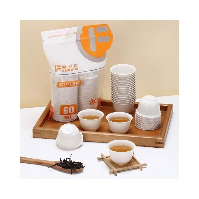 台灣現貨|食品級稻殼茶杯 60ML(50入) ♻️ 加厚耐高溫 一次性茶杯 小茶杯 功夫茶杯 環保材質