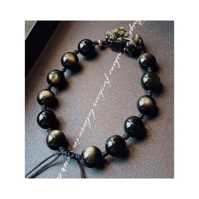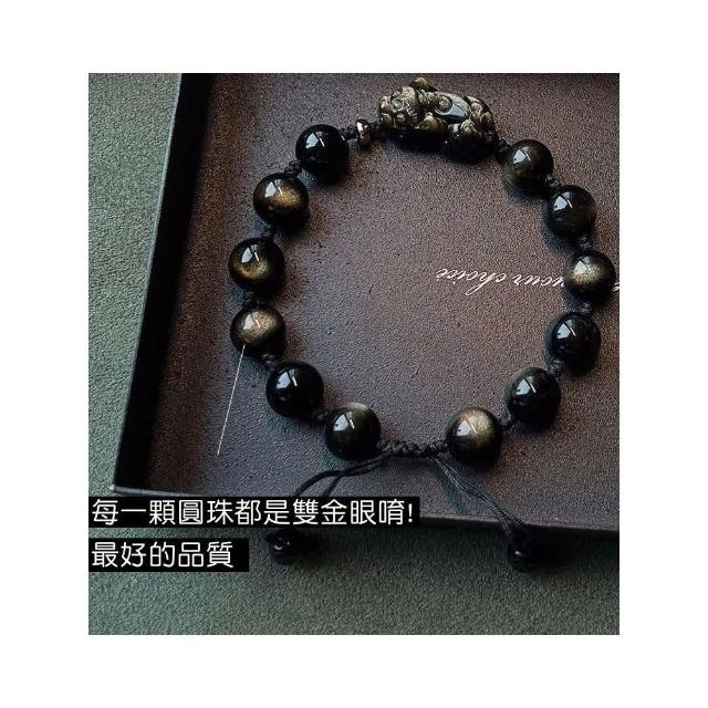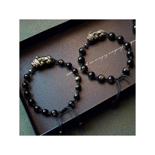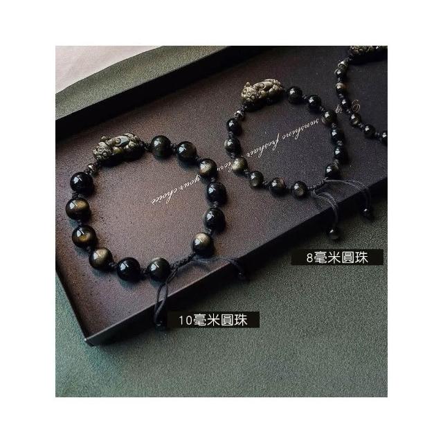 黑曜石金曜石貔貅手鍊8/12MM圓珠款 招財轉運 編繩手串 情侶對鍊 男女開運手環