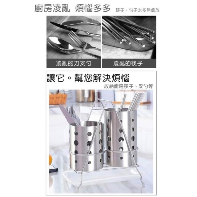 304不鏽鋼高低雙筒筷子筒套組|帶接水盤 餐具瀝水收納架