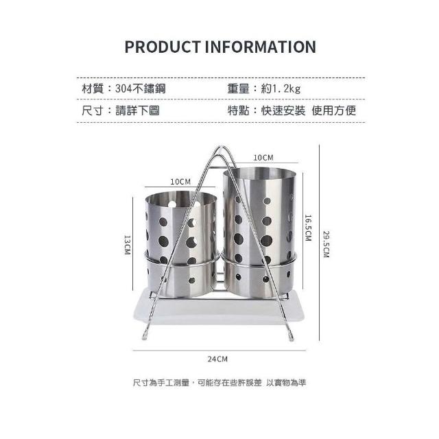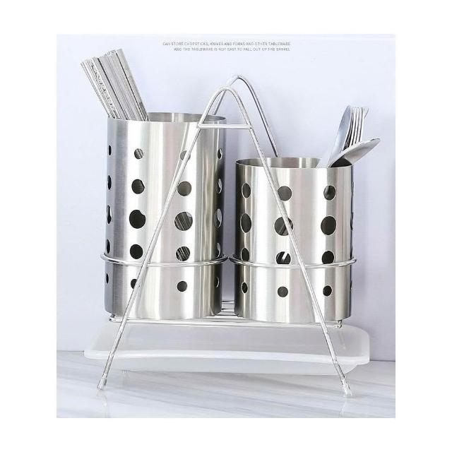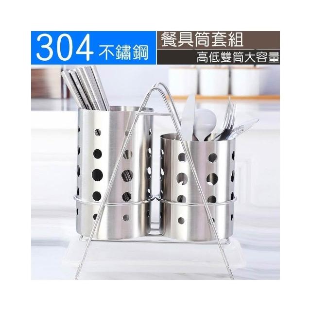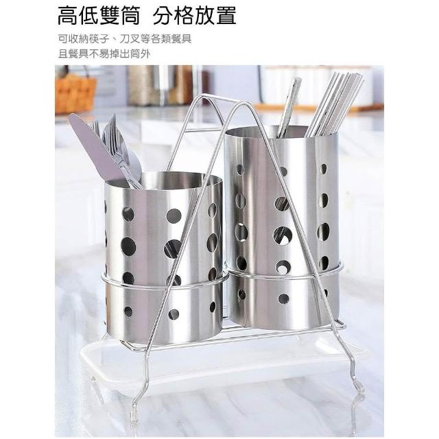 304不鏽鋼高低雙筒筷子筒套組|帶接水盤 餐具瀝水收納架
